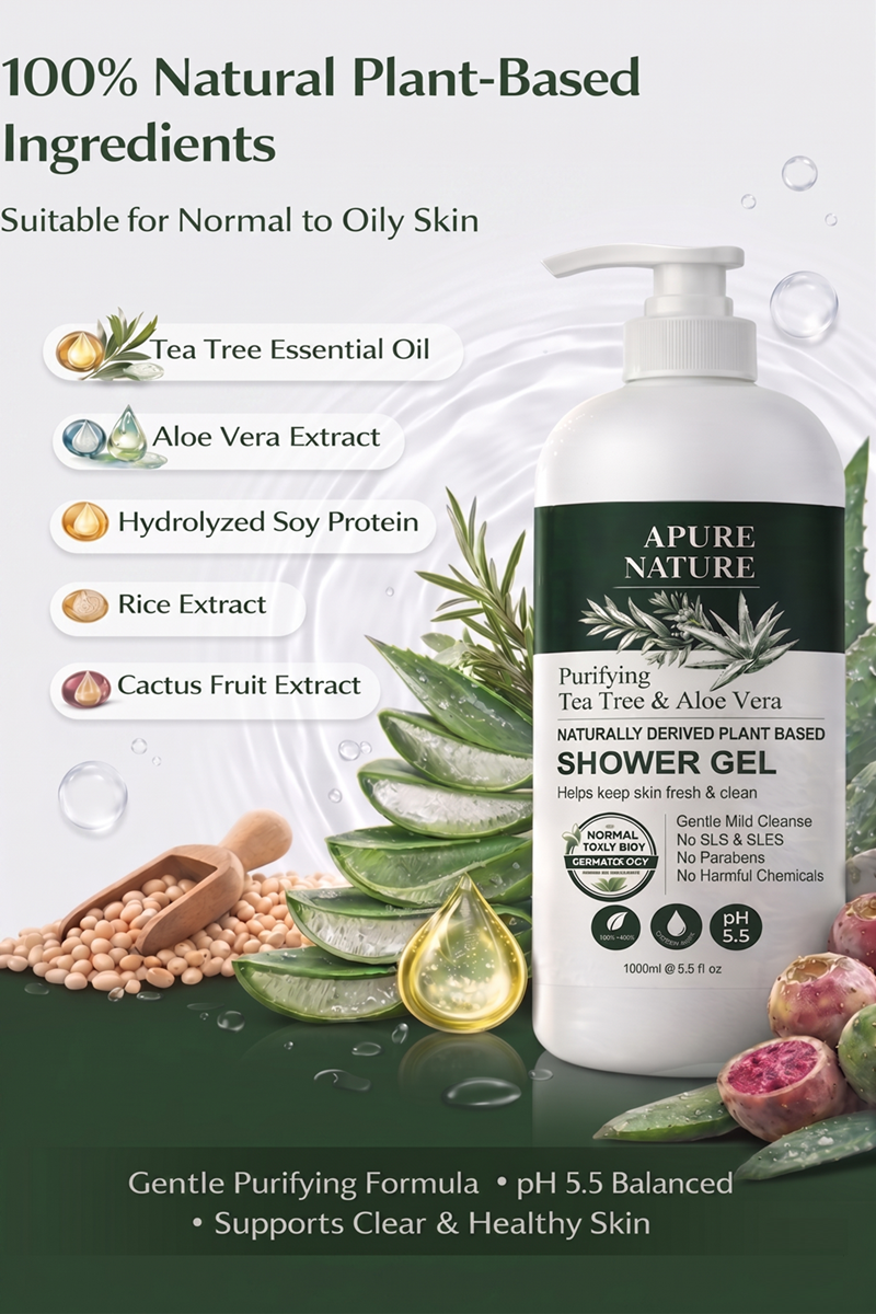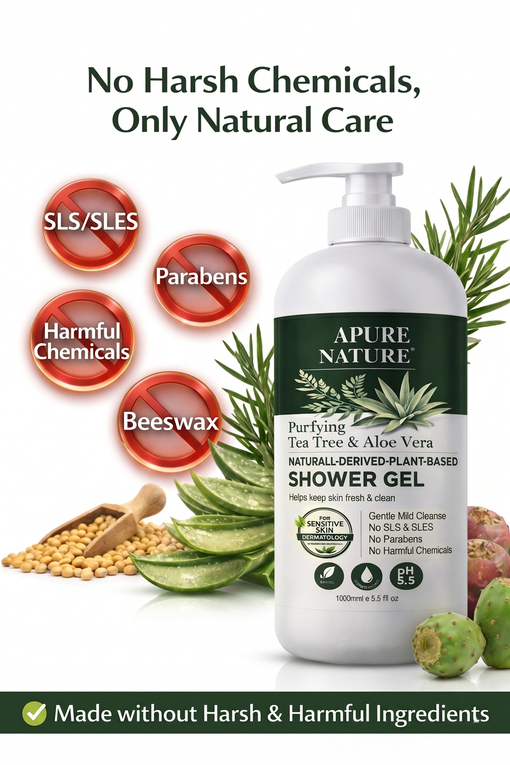 APURE NATURE PURIFYING TEA TREE & ALOE VERA NATURAL SHOWER GEL 1000ML