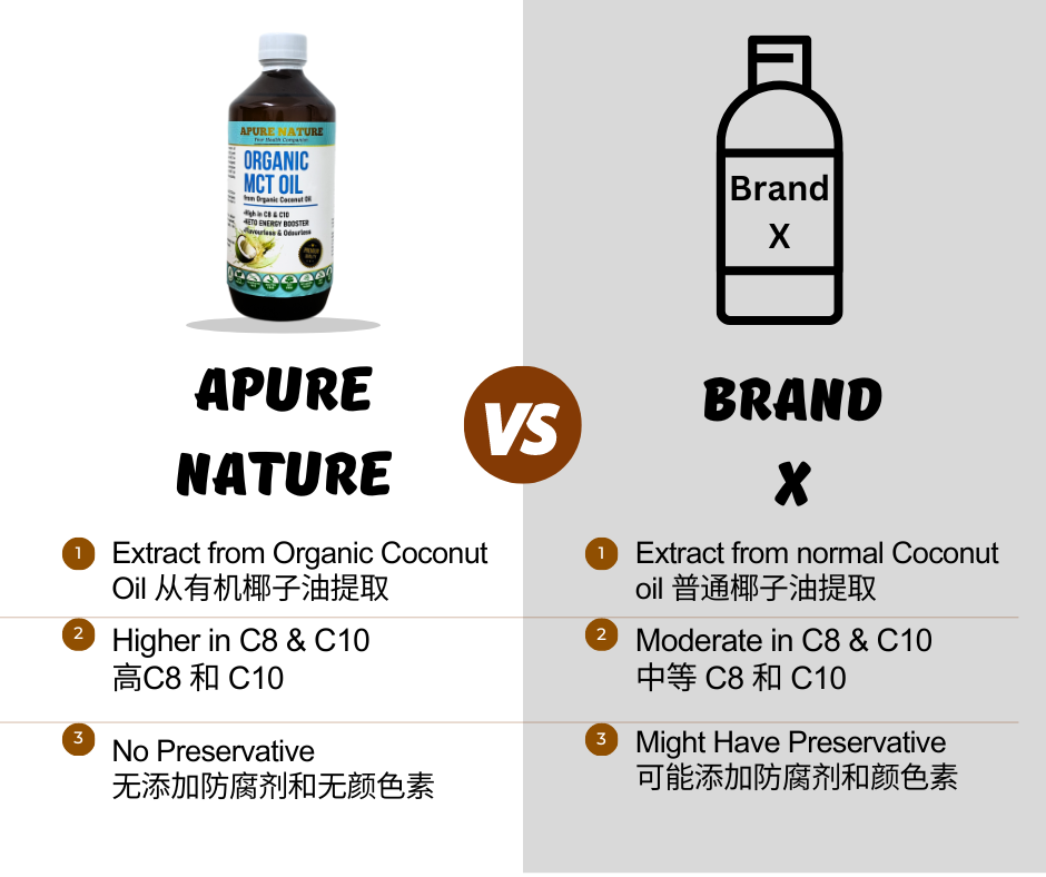 Medium chain triglyceride (MCT) is a unique fatty acid and it has the highest content in coconut oil. MCT oil is a mixture of saturated triglycerides, mainly Caprylic Acids (C8.0) and Capric acids (C10.0).The fatty acid of MCT oil has smaller molecular structure, higher water solubility which can be easily metabolized by the body.